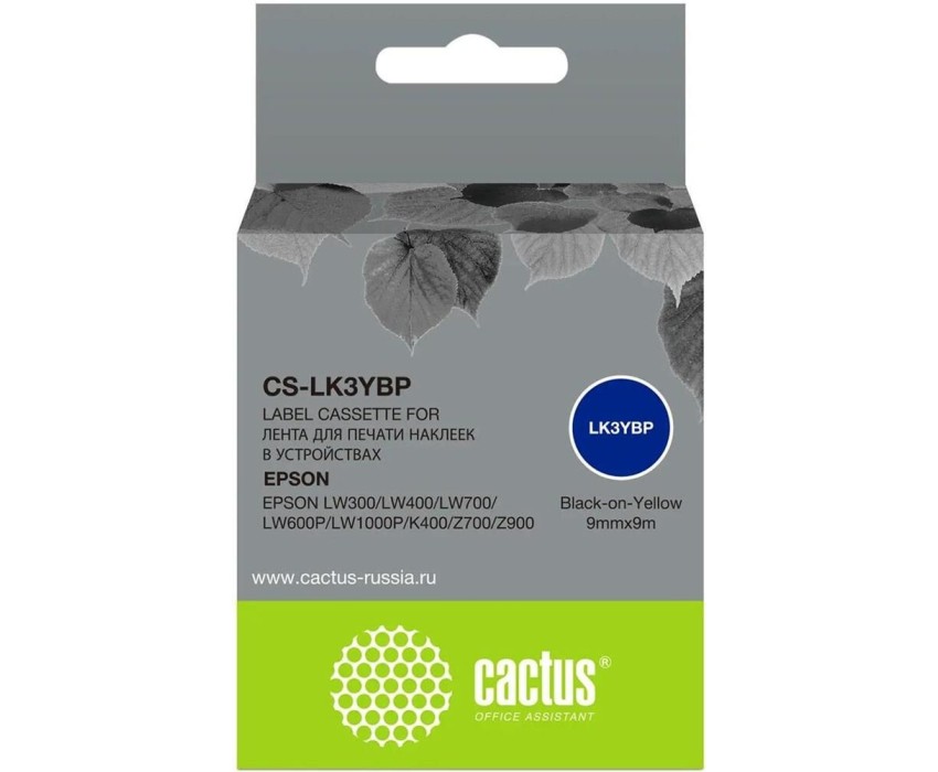 Картридж CACTUS Картридж CS-LK3YBP, LK-3YBP, 9мм, черный шрифт, желтый фон, 9м ( CS-LK3YBP