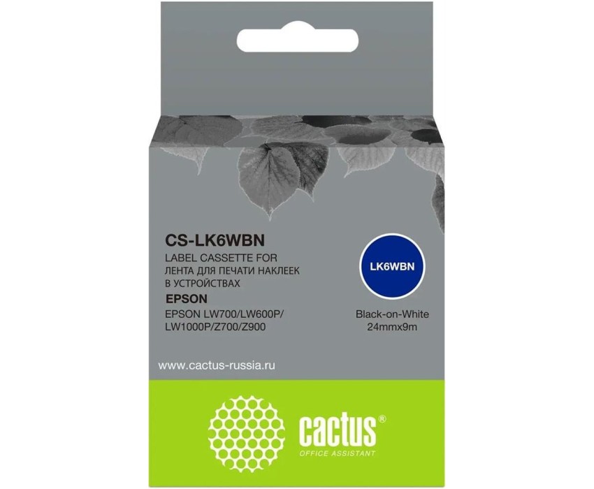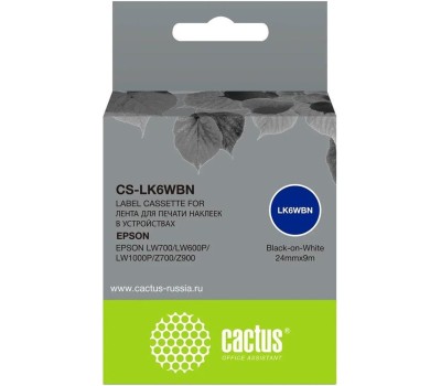 Картридж CACTUS Картридж CS-LK6WBN, LK-6WBN, 24мм, черный шрифт, белый фон, 9м ( CS-LK6WBN