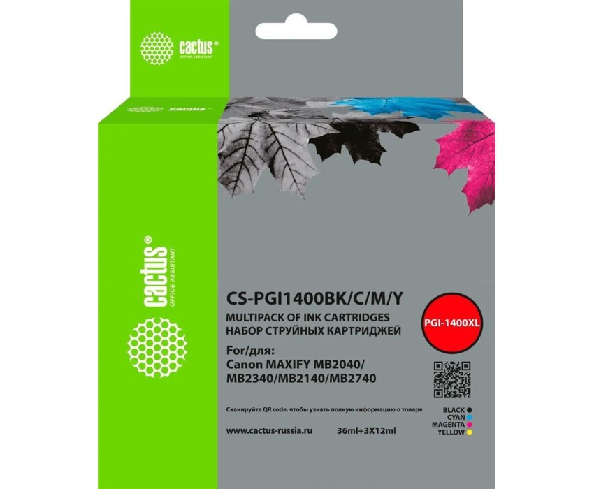 Картридж CACTUS Картридж CS-PGI1400BK/C/M/Y, 4 цвета / CS-PGI1400BK/C/M/Y