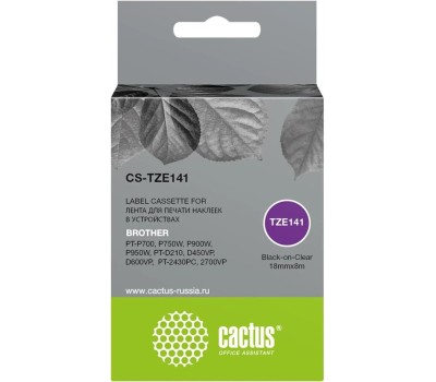 Картридж CACTUS Картридж CS-TZE141, TZe-141, 18мм, черный шрифт, прозрачный фон, 8м ( CS-TZE141