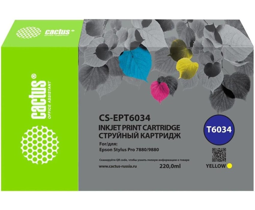 Картридж CACTUS Картридж CS-EPT6034, T6034, желтый пигментный / CS-EPT6034
