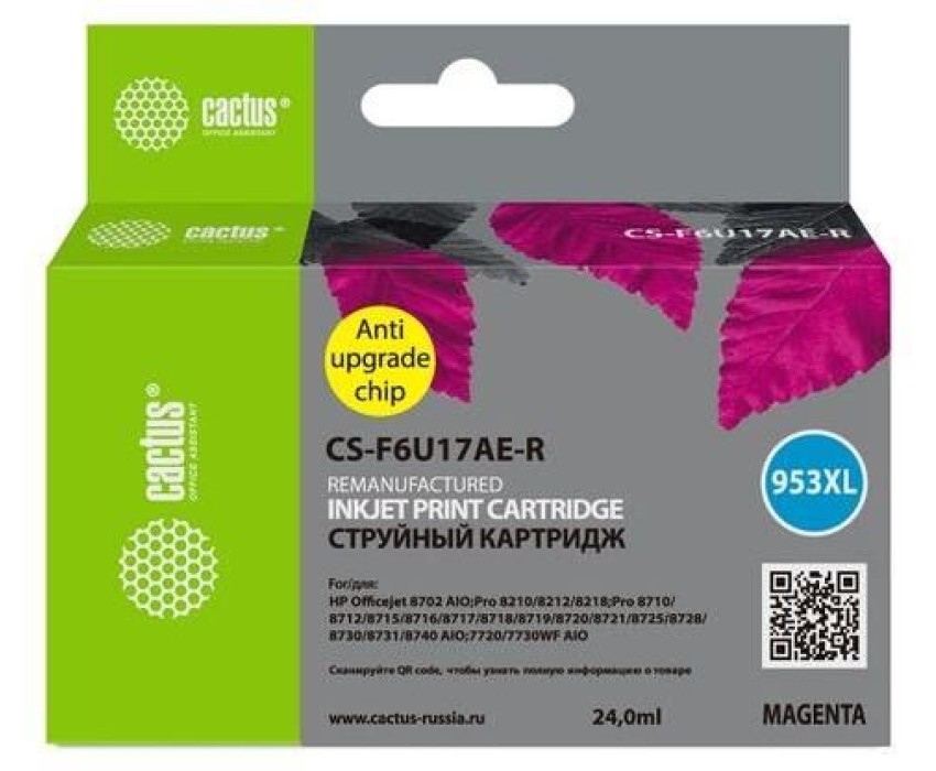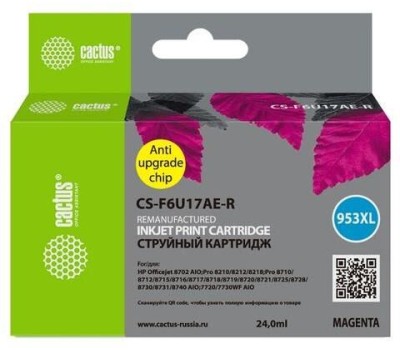 Картридж CACTUS Картридж CS-F6U17AE-R, 953XL, пурпурный / CS-F6U17AE-R