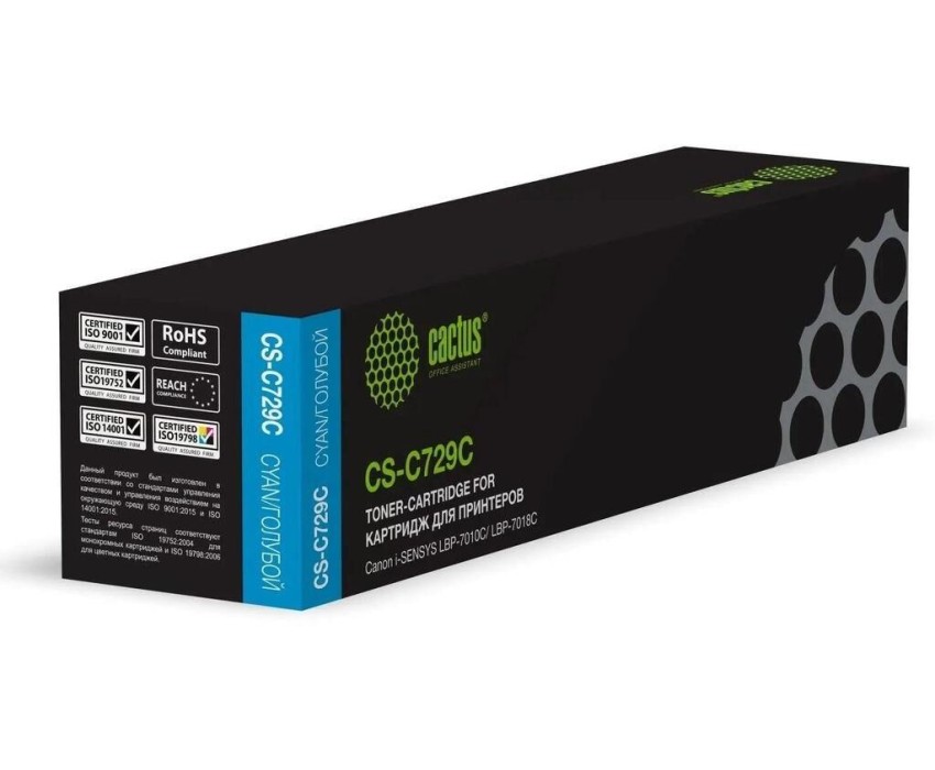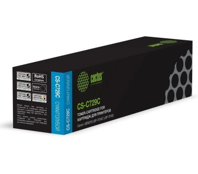CACTUS Картридж лазерный CS-C729C 729 C голубой (1000стр.) для Canon i-SENSYS LBP-7010C/ LBP-7018C