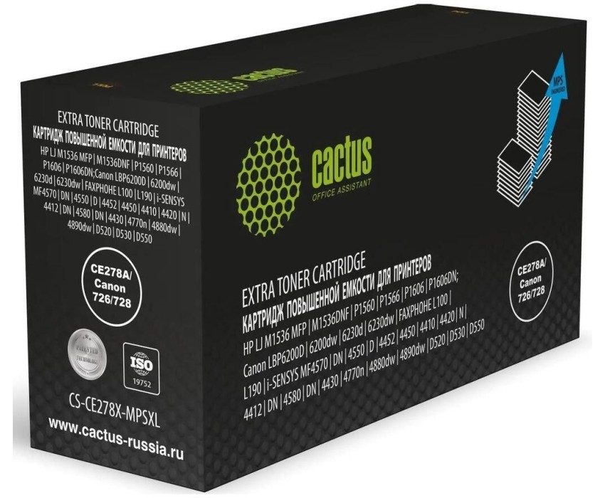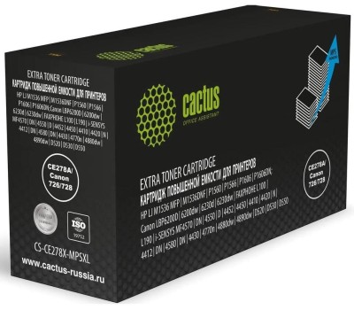 CACTUS Картридж лазерный CS-CE278X-MPSXL CE278A/Canon 726/728 черный (8000стр.) для HP J M1536 MFP/M1536DNF/P1560/P1566/P1606/P1606DN; Canon LBP6200D/6200dw/6230d/6230dw/FAXPHOHE L100/L190, i-SENSYS MF4570/DN/4550/D/4452/4450/4410/4420/N/4412/DN/4580/DN/4
