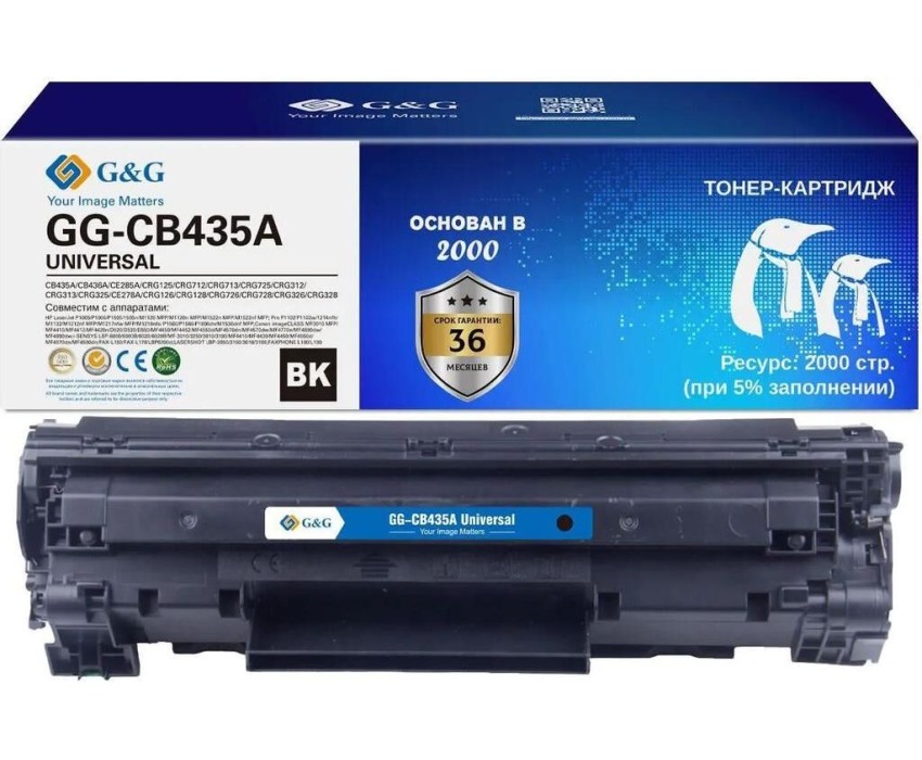 Картридж лазерный G&G Картридж лазерный GG-CB435A UNIVERSAL черный (2000стр.) для HP P1005/1006/1505/M1120/М1522/P1102/1214/M1132/1212nf/1217nfw/1218nfs/P1560/1566/1606/M1536dnf Canon MF3010/4410/4412/4420n/ D520/530/550/MF4450/4452/4550d/4570/4770n/4880d
