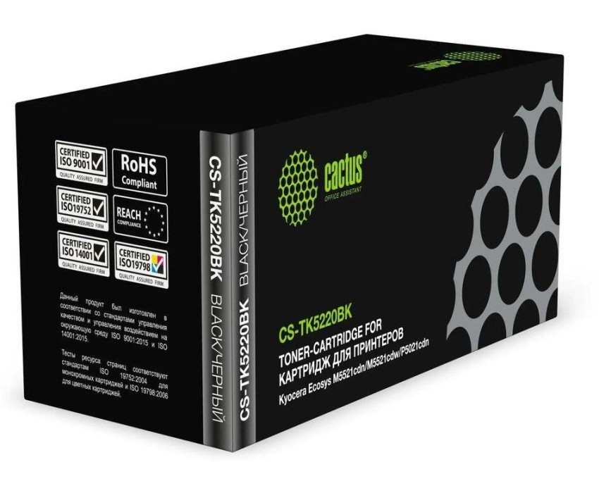 CACTUS Картридж лазерный CS-TK5220BK TK-5220BK черный (1200стр.) для Kyocera Ecosys M5521cdn/M5521cdw/P5021cdn/P5021cdw с чипом