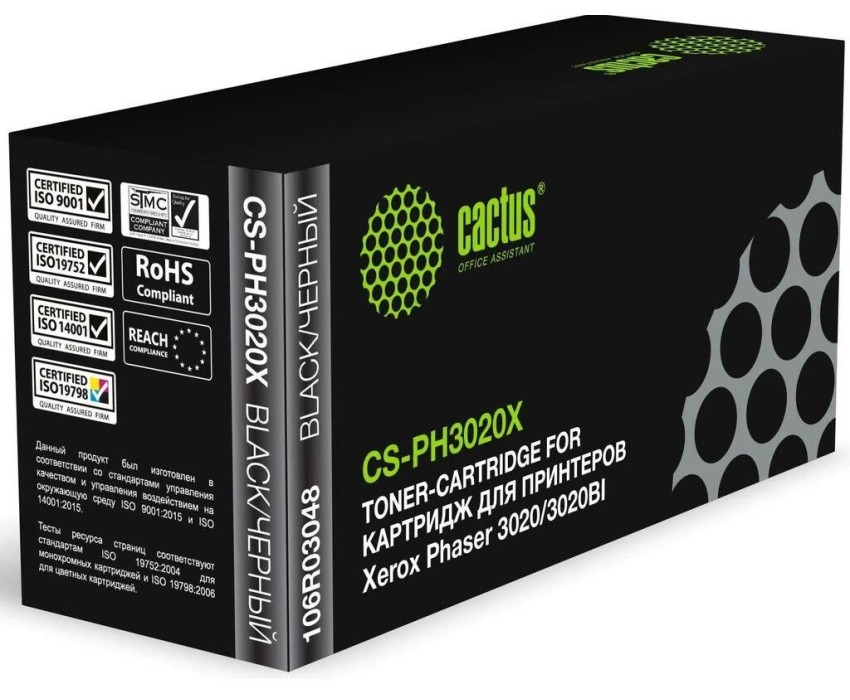 CACTUS Картридж лазерный CS-PH3020X 106R03048 черный набор двойная упак. (1500стр.) для Xerox Phaser 3020/3020BI