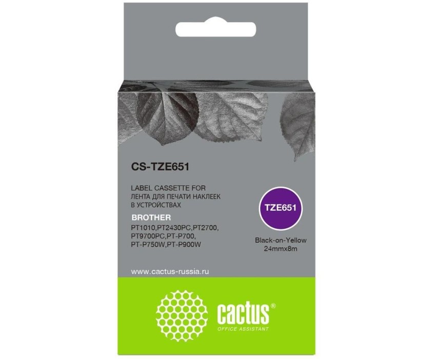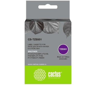 CACTUS Картридж ленточный CS-TZE651 TZe-651 черный на желтом 24x8 для Brother 1010/1280/1280VP/2700VP