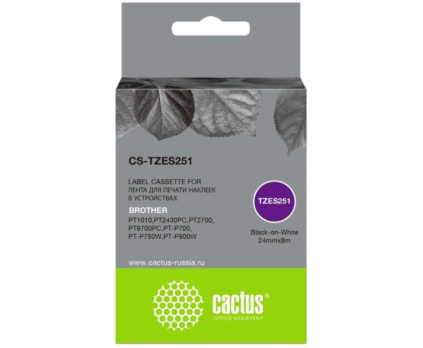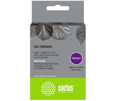 CACTUS Картридж ленточный CS-TZES251 TZe-S251 черный на белом 24x8 для Brother 1010/1280/1280VP/2700VP