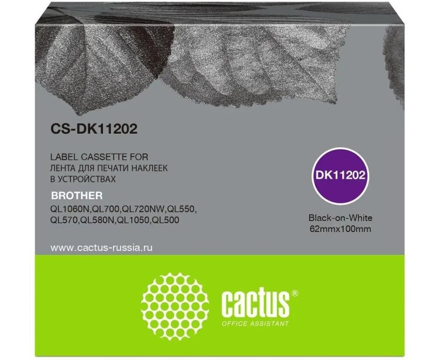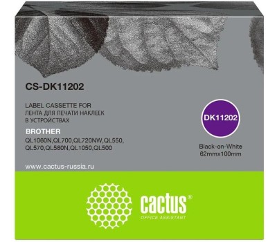 CACTUS Картридж ленточный CS-DK11202 DK-11202 черный на белом для Brother P-touch QL-500, QL-550, QL-700, QL-800