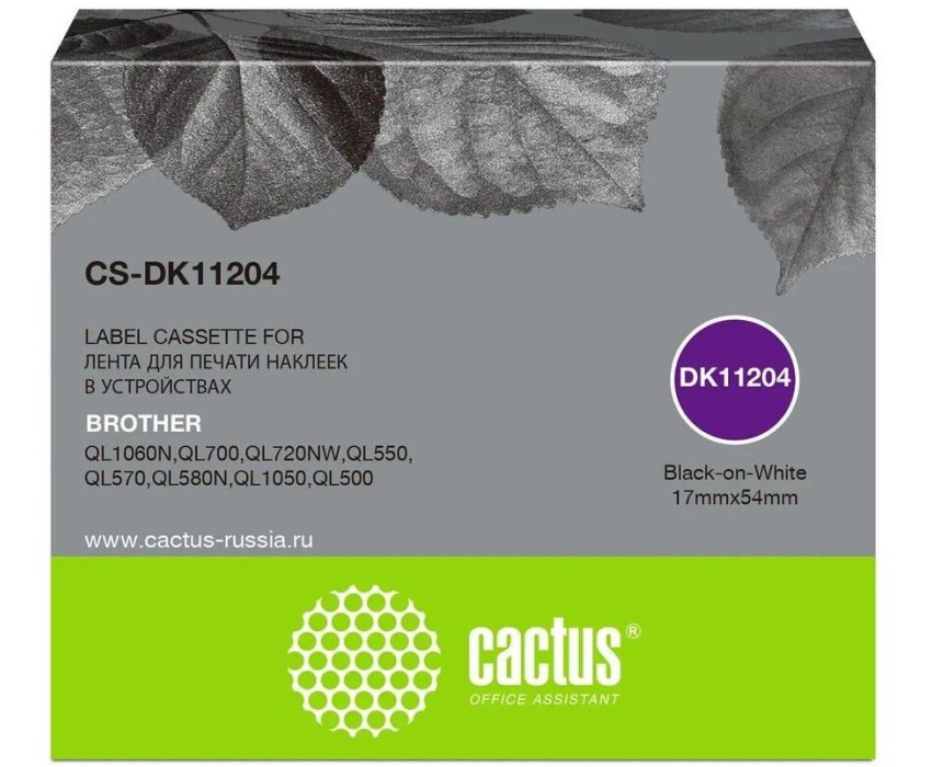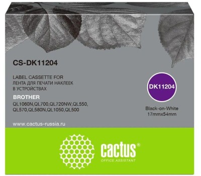CACTUS Картридж ленточный CS-DK11204 DK-11204 черный на белом для Brother P-touch QL-500, QL-550, QL-700, QL-800