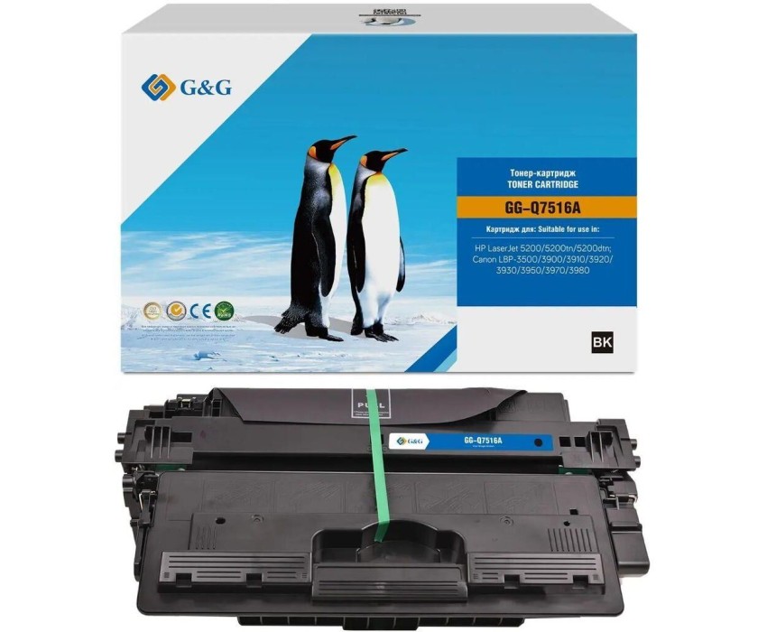 Картридж лазерный G&G Картридж лазерный GG-Q7516A Q7516A черный (12000стр.) для HP LJ 5200/5200tn/5200dtn