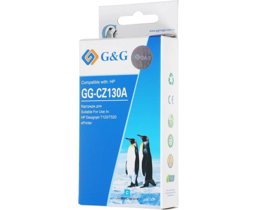 Картридж струйный G&G Картридж струйный GG-CZ130A голубой (26мл) для HP DJ T120/T520