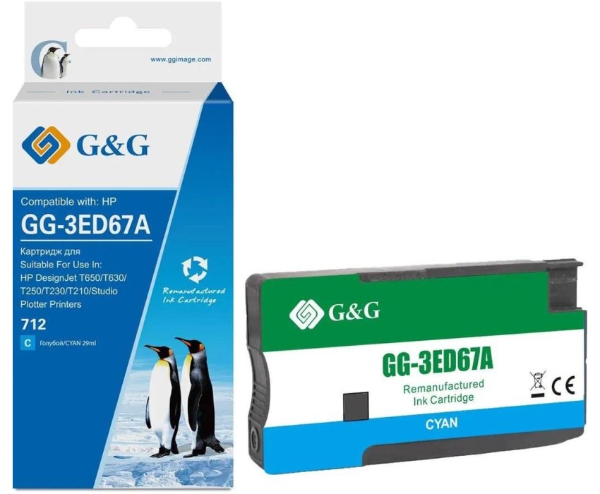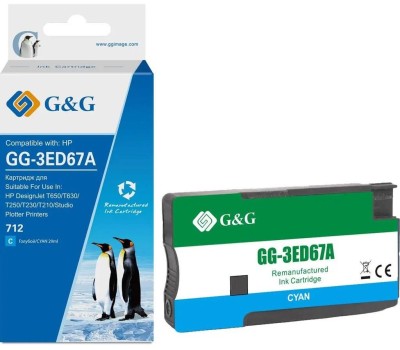Картридж струйный G&G Картридж струйный GG-3ED67A 712 голубой (29мл) для HP DesignJet T650/T630/T250/T230/T210/Studio Plotter Printers