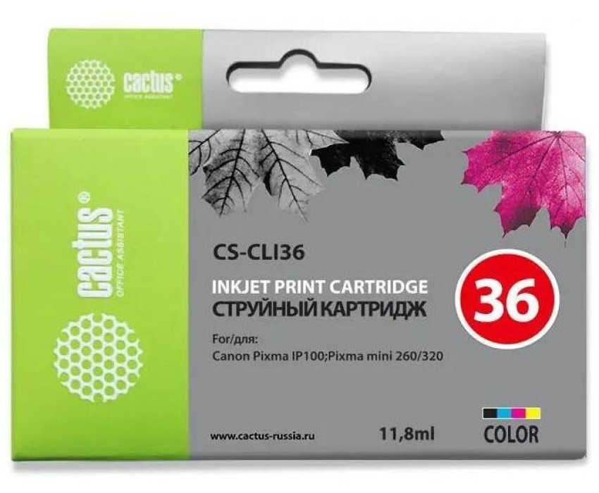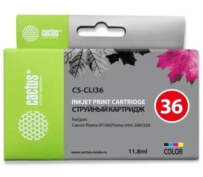 CACTUS Картридж струйный CS-CLI36 CLI-36 многоцветный (11.8мл) для Canon Pixma iP 100/ MiNi 260 с чипом