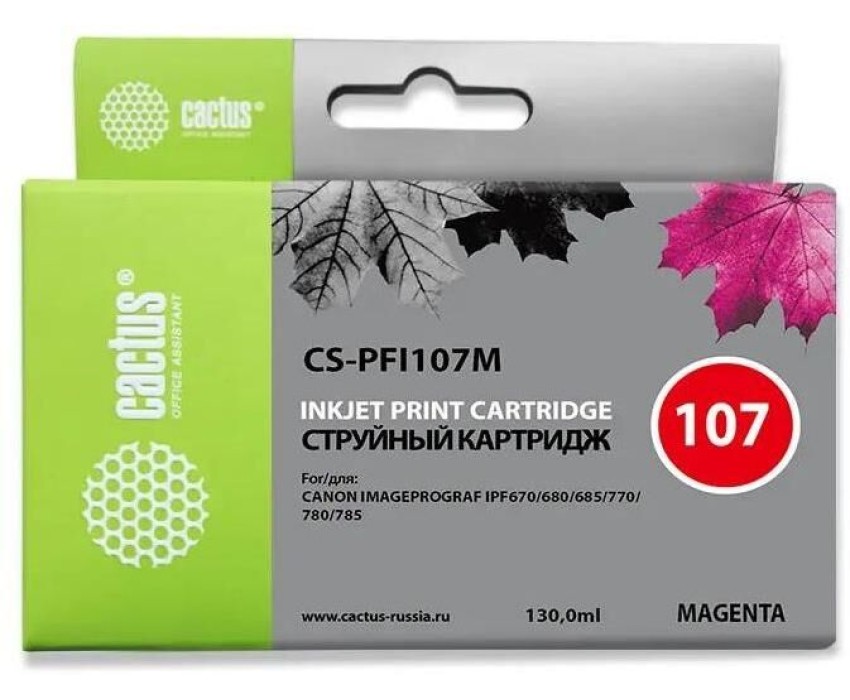 CACTUS Картридж струйный CS-PFI107M PFI-107 M пурпурный (130мл) для Canon IP iPF670/iPF680/iPF685/iPF770/iPF780/iPF785/ с чипом