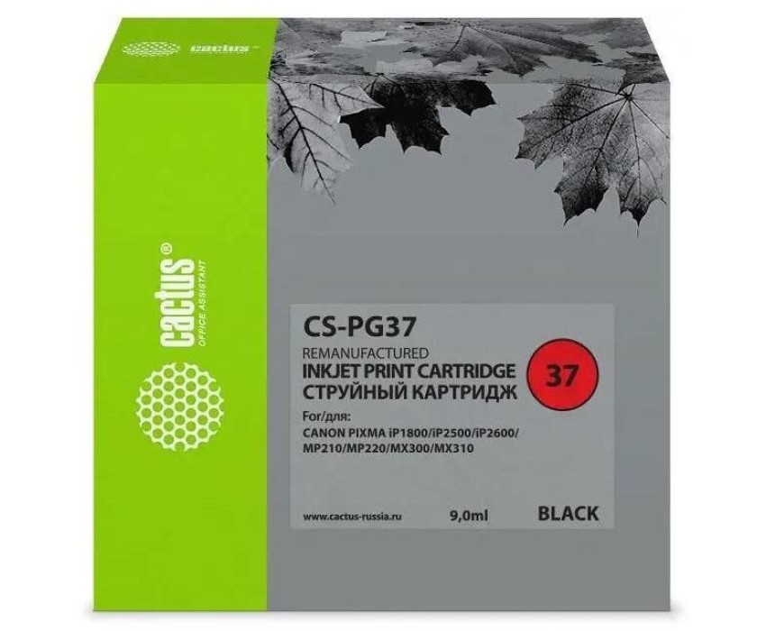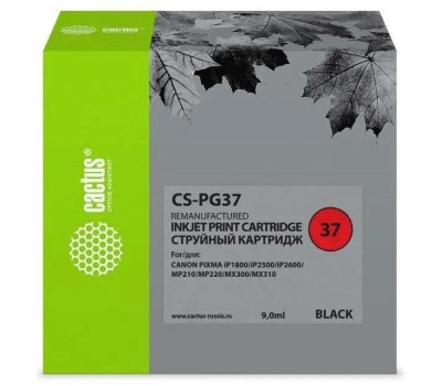 CACTUS Картридж струйный CS-PG37 PG-37 черный (9мл) для Canon Pixma iP1800/iP1900/iP2500/iP2600/MP140/MP190/MP210/MP220/MP470/MX300/MX310 с чипом