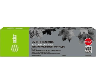 CACTUS Картридж перезаправляемый струйный CS-R-PFI320MBK PFI-320 черный матовый (260мл) для Canon imagePROGRAF TM-200/200MFP/205/300/300MFP/305/250/255/350/355 без чипа