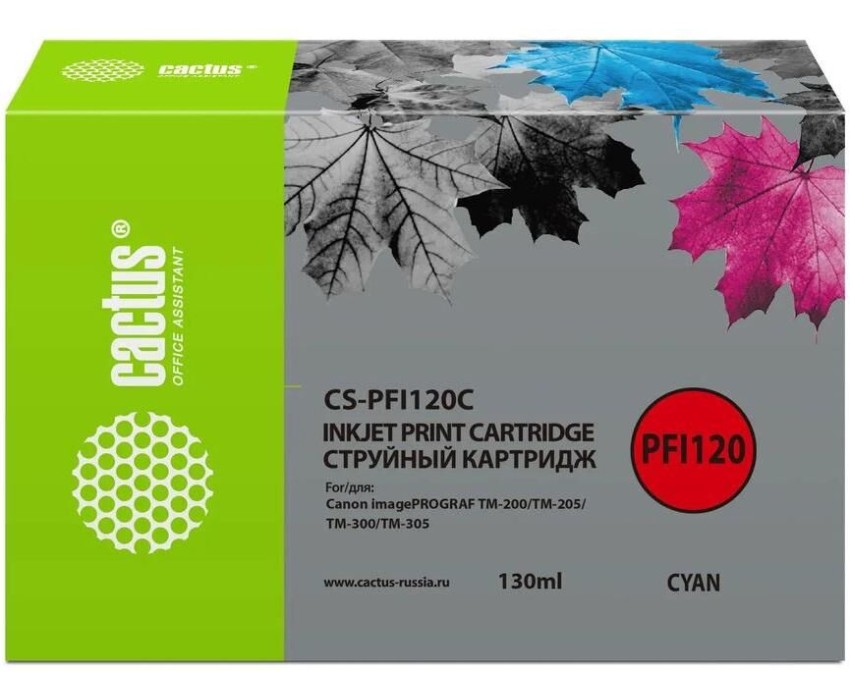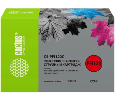 CACTUS Картридж струйный CS-PFI120C PFI-120 C голуб.пигм. (130мл) для Canon imagePROGRAF TM-200/TM-205/TM-300/TM-305 с чипом