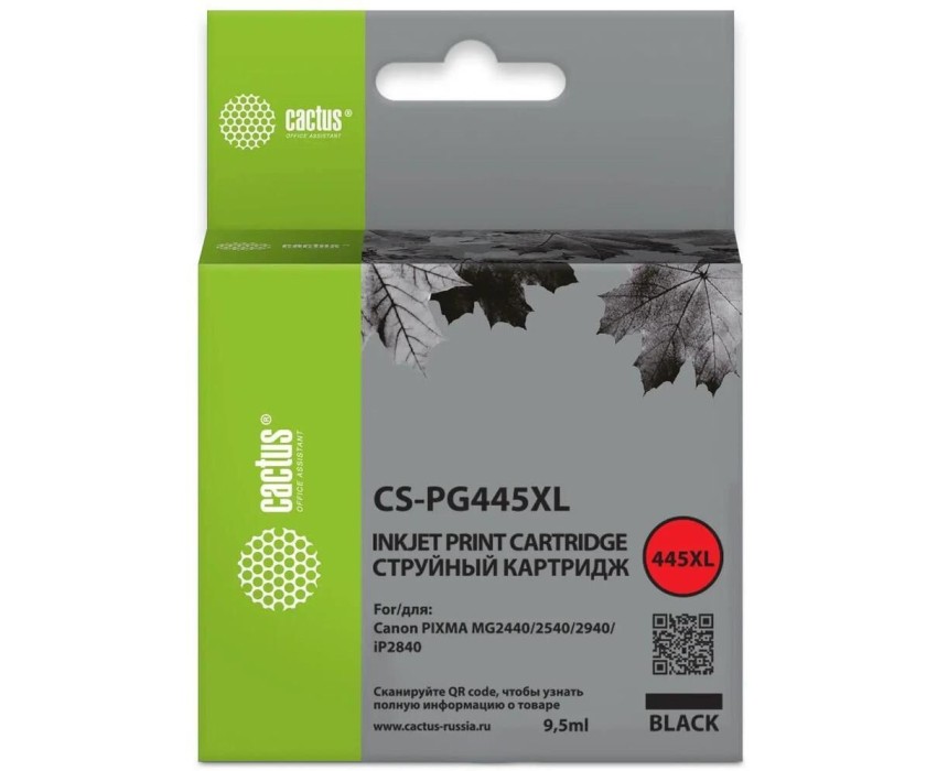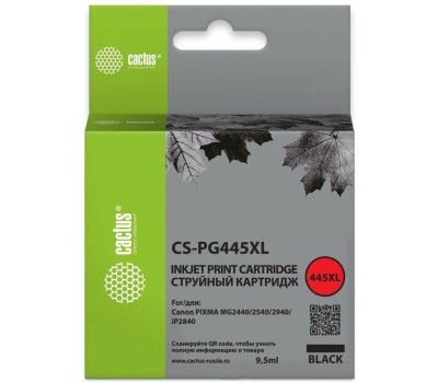 CACTUS Картридж струйный CS-PG445XL PG-445XL черный (400стр.) (9.5мл) для Canon PIXMA MG2440/2540/2940/iP2840 с чипом