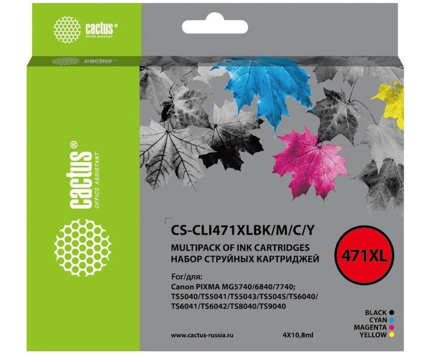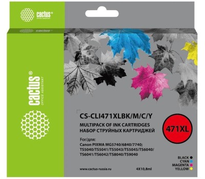 CACTUS Картридж струйный CS-CLI471XLBK/M/C/Y CLI-471XL фото черный/голубой/пурпурный/желтый набор (43.2мл) для Canon TS5040/MG5740/MG6840/MG7740 с чипом