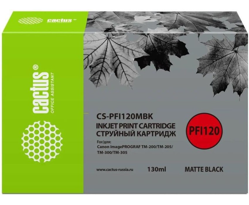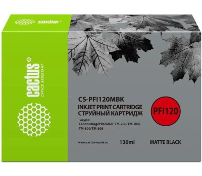 CACTUS Картридж струйный CS-PFI120MBK PFI-120 MBK черный матовый (130мл) для Canon imagePROGRAF TM-200/TM-205/TM-300/TM-305 с чипом