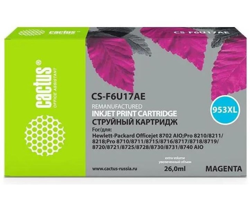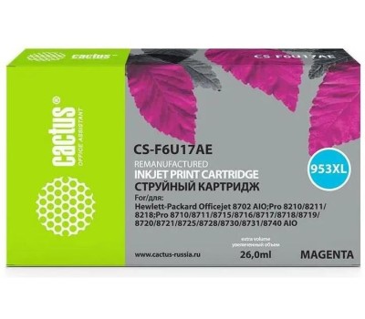 CACTUS Картридж струйный CS-F6U17AE 953XL пурпурный (26мл) для HP OJ Pro 7740/8210/8218/8710/8715 с чипом
