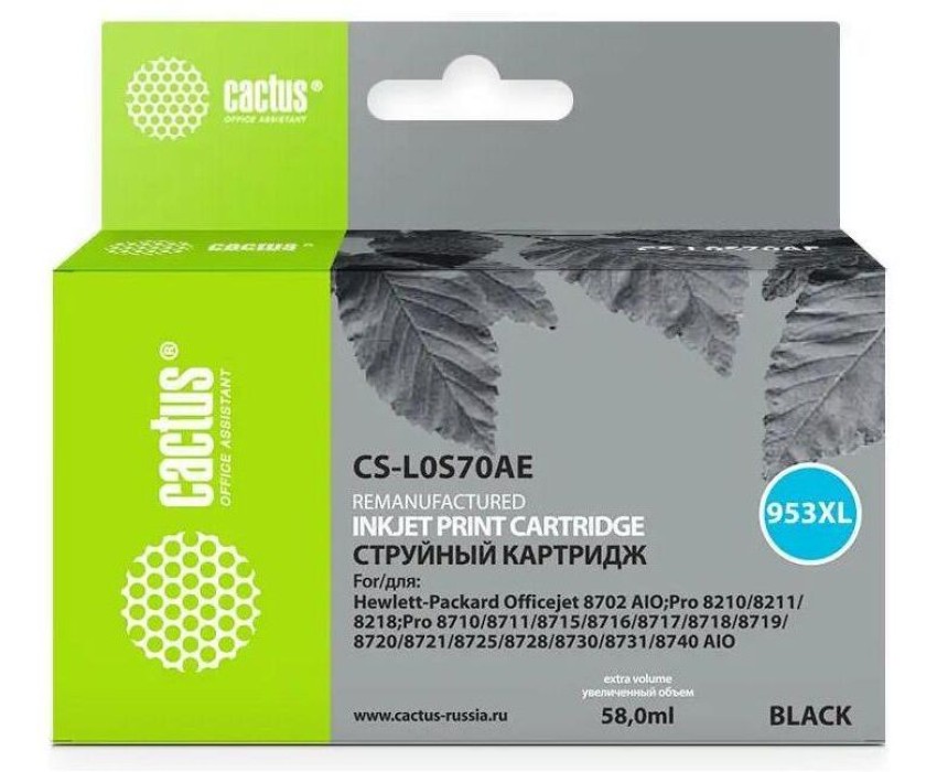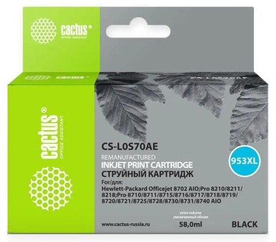 CACTUS Картридж струйный CS-L0S70AE №953XL черный пигментный (56мл) для HP OJ Pro 7740/8210/8218/8710/8715 с чипом