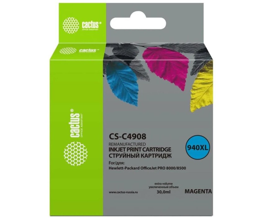 CACTUS Картридж струйный CS-C4908 №940XL пурп.пигм. (30мл) для HP OfficeJet 8000 с чипом