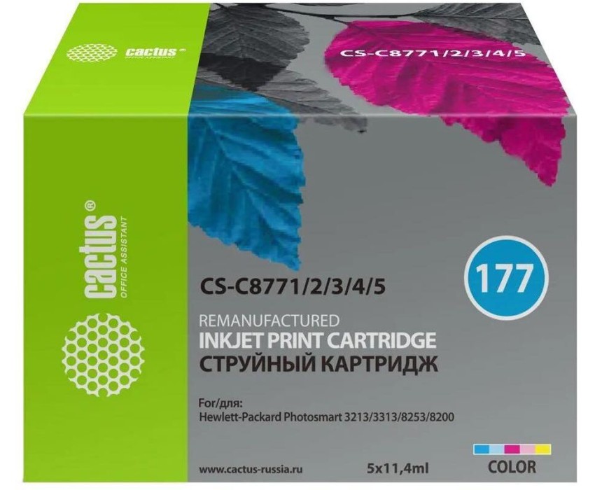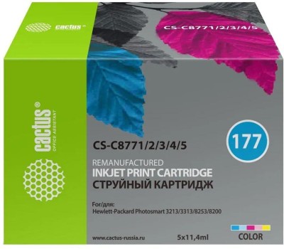 CACTUS Картридж струйный CS-C8771/2/3/4/5 №177 голубой/пурпурный/желтый/светло-голубой/светло-пурпурный набор (11.4мл) для HP PS 2113/3313/8253/8200 с чипом