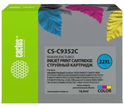 CACTUS Картридж струйный CS-C9352C №22XL многоцветный (18мл) для HP DJ 3920/3940/D1360/D1460/D1470/D1560/D2330/D2360 с чипом
