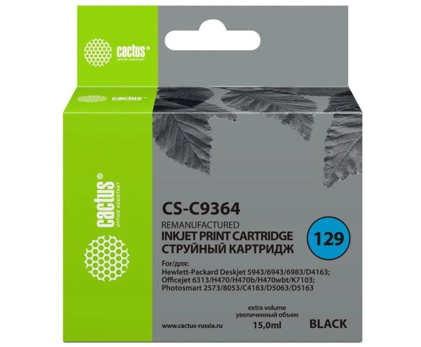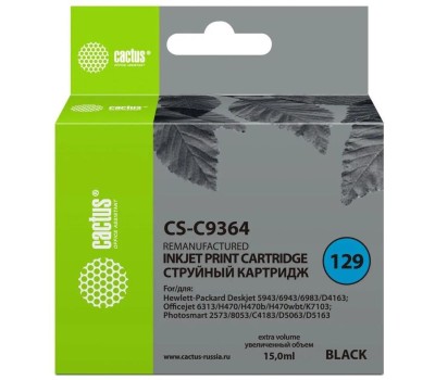 CACTUS Картридж струйный CS-C9364 №129 черный (15мл) для HP PS 8053/8753/5943/2573/DJ 5900series с чипом