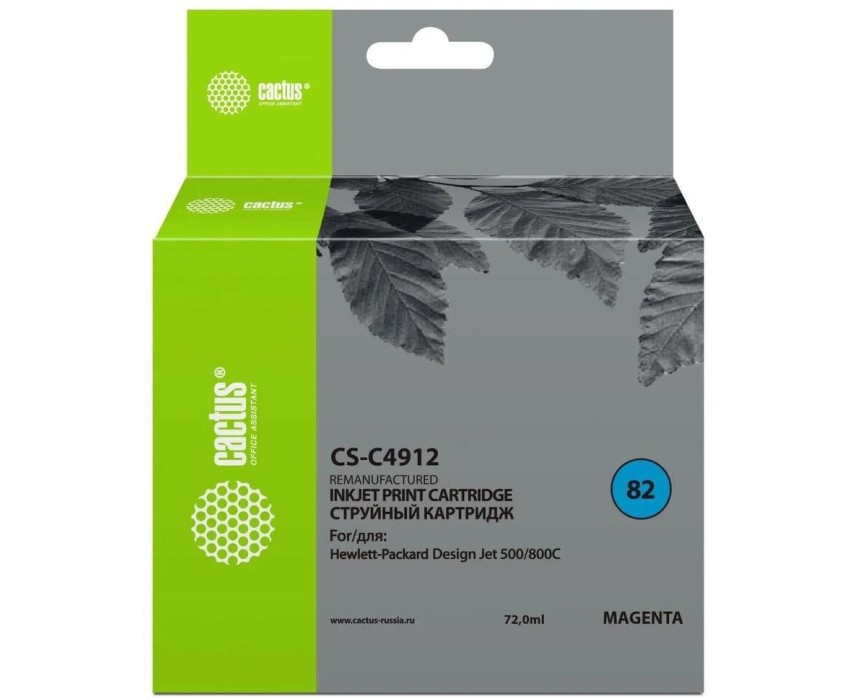 CACTUS Картридж струйный CS-C4912 №82 пурпурный (72мл) для HP DJ 500/800C с чипом