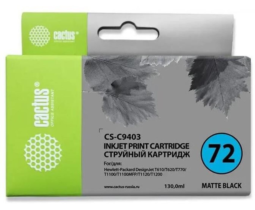 CACTUS Картридж струйный CS-C9403 №72 черный матовый (130мл) для HP DJ T610/T620/T770/T1100/T1100MFP/T1120/T1200 с чипом