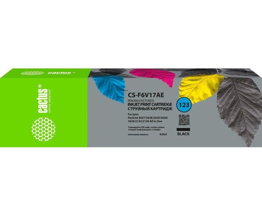 CACTUS Картридж струйный CS-F6V17AE №123 черный (6мл) для HP HP DeskJet 2130 с чипом