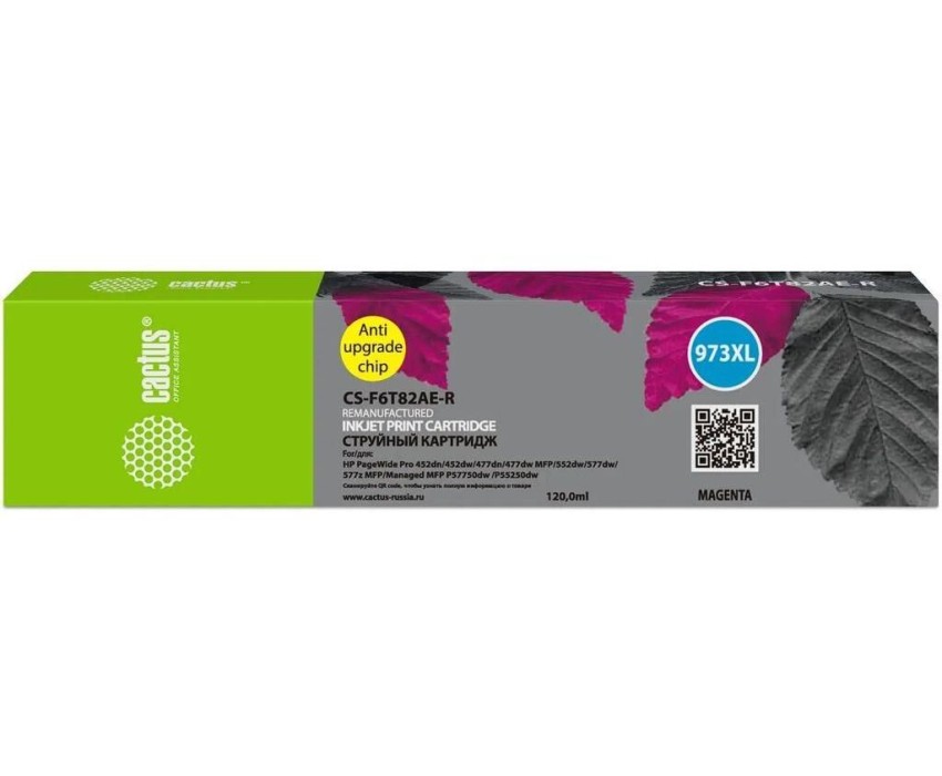 CACTUS Картридж струйный CS-F6T82AE-R 973XL пурпурный (7000стр.) (120мл) для HP PageWide Pro 452dw/477dw с чипом