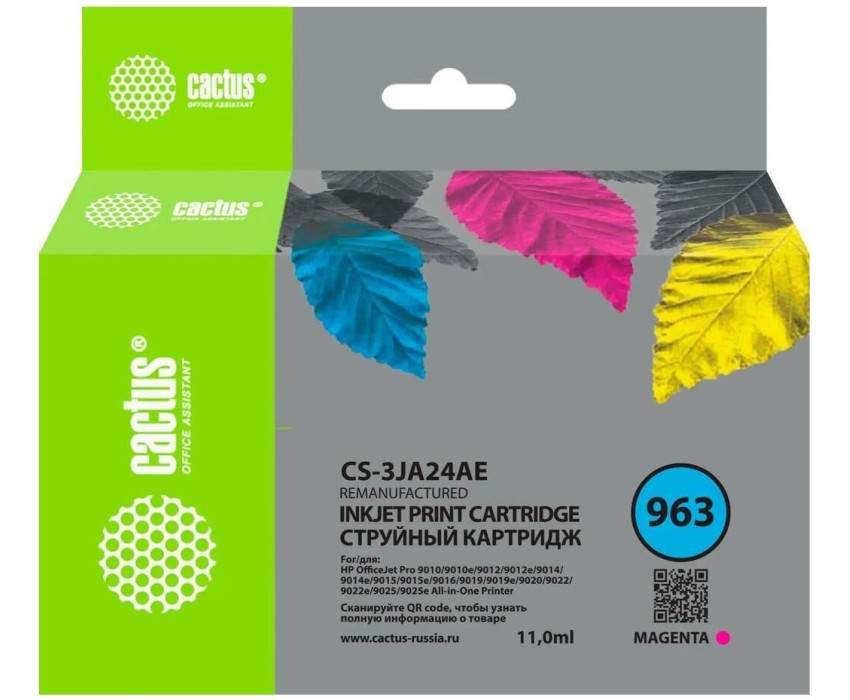 CACTUS Картридж струйный CS-3JA24AE 963 пурп.пигм. (11мл) для HP OfficeJet 9010/9012/9013/9014/9015/9016/9019/9020/9025 с чипом