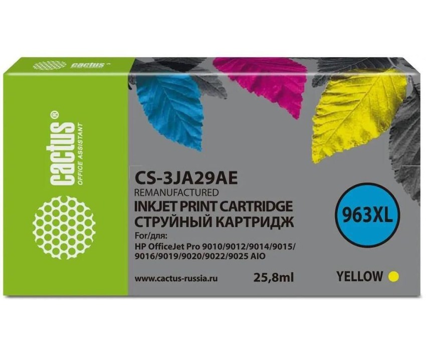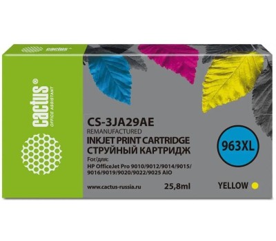 CACTUS Картридж струйный CS-3JA29AE 963XL желт.пигм. (25.8мл) для HP OfficeJet Pro 9010/9010e/9012/9014/9015/9016/9019 с чипом
