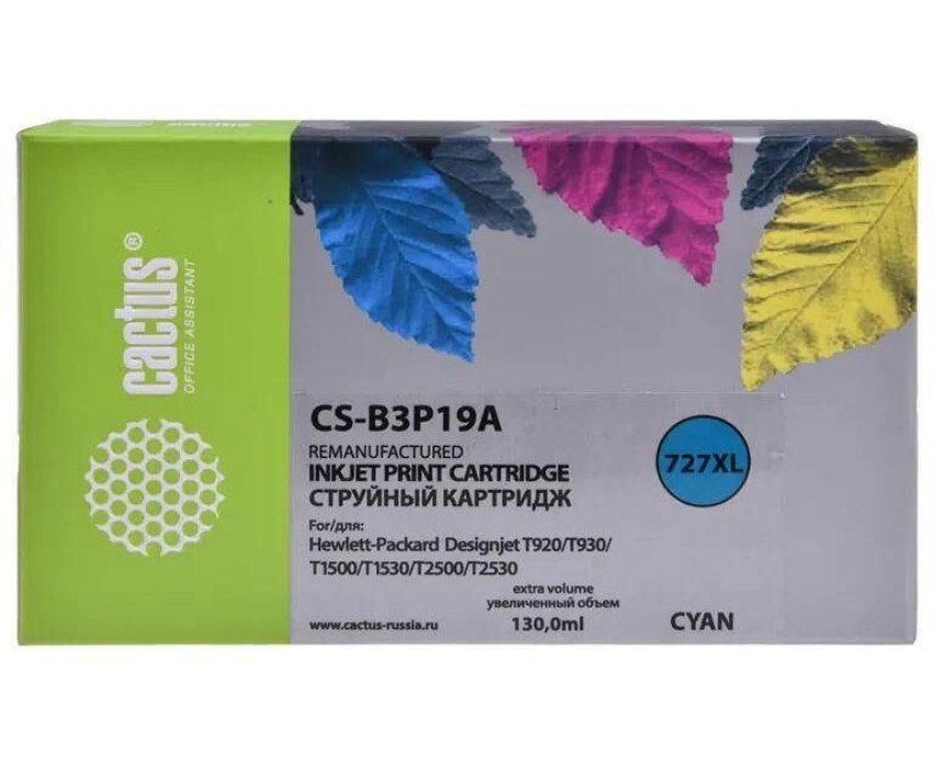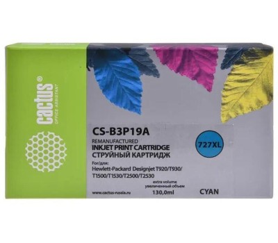 CACTUS Картридж струйный CS-B3P19A №727 голубой (130мл) для HP DJ T920/T1500 с чипом