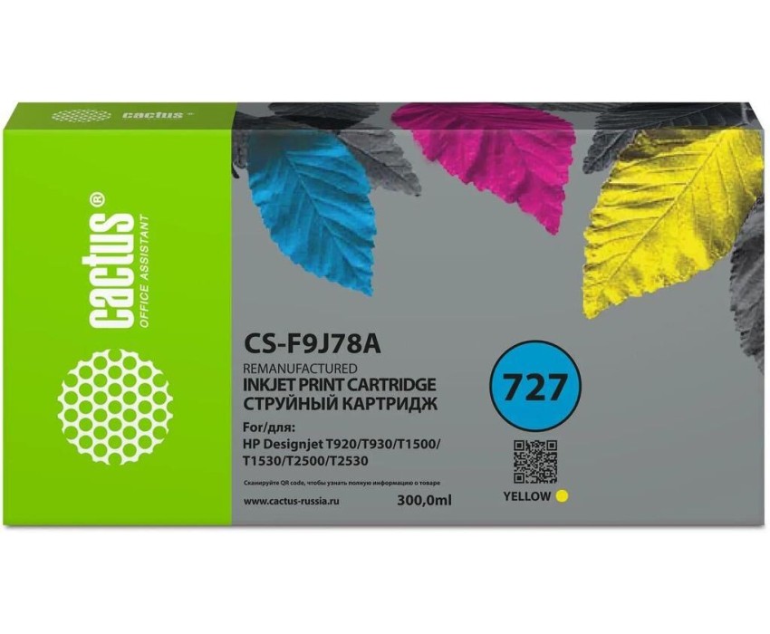 CACTUS Картридж струйный CS-F9J78A 727 XXL желтый (300мл) для HP DJ T920/T930/T1500/T1530/T2500/T2530 с чипом