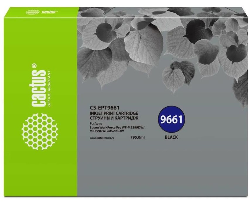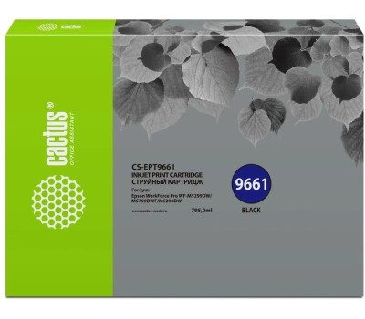 CACTUS Картридж струйный CS-EPT9661 T9661 черный пигментный (40000стр.) (795мл) для Epson WorkForce Pro WF-M5299DW/M5799DWF с чипом
