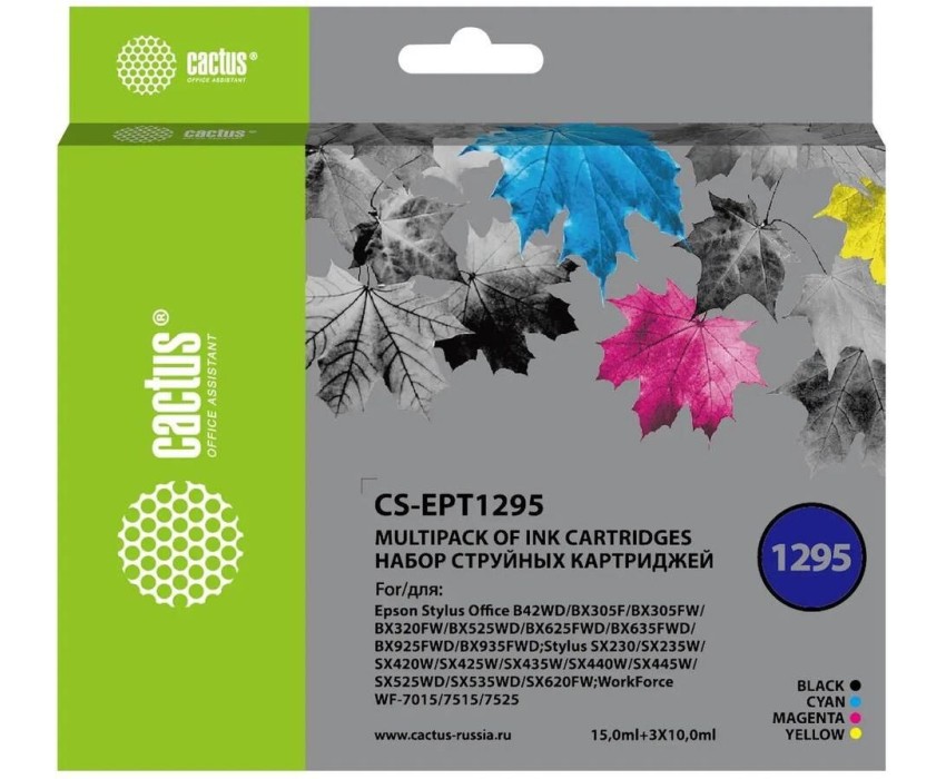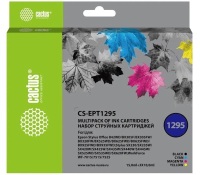 CACTUS Картридж струйный CS-EPT1295 T1295 черный/голубой/желтый/пурпурный набор (45мл) для Epson Stylus Office B42/BX305/BX305F/BX320/BX525/BX625/SX420/SX425/SX525/SX620 с чипом