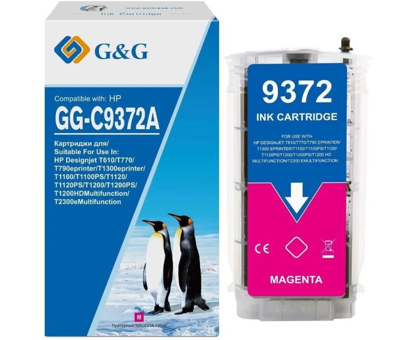 Картридж струйный G&G Картридж струйный GG-C9372A №72 пурпурный (130мл) для HP Designjet T610, T770, T790eprinter, T1300eprinter, T1100, T1100PS, T1120, T1120PS, T1200, T1200PS, T1200HDMultifunction, T2300eMultifunction