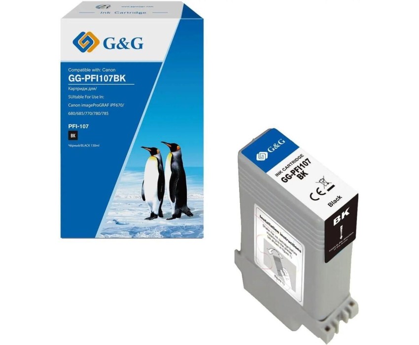 Картридж струйный G&G Картридж струйный GG-PFI107BK PFI-107 BK черный (130мл) для Canon imageProGRAF iPF670/680/685/770/780/785