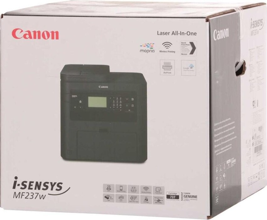 МФУ. Технология печати - лазерный. Цветность - монохромный. Макс. разрешение - 1200х1200 dpi. Максимальная скорость печати - 23 стр/мин. Передача данных - подключение к ПК (USB), подключение к сети (LAN), Wi-Fi 4 (802.11n), Wi-Fi Direct, AirPrint. Облачная печать - Google Cloud Print, Mopria, Canon PRINT Business. Экран - сенсорный монохромный. Дополнительно - встроенный факс. Лоток подачи - 250 листов. Лоток выдачи - 100 листов. Потребляемая мощность - 1120 Вт. Габариты (ШхГхВ) - 390x371x360 мм. Вес - 11.4 кг. Кол-во картриджей - 1 шт. Модель картриджей - 737 (9435B002).