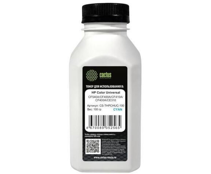 Тонер CACTUS Тонер CS-THPCHUС-100, для HP Color Universal CF540A/CF400A/CF410A/CF400A/CE310, голубой, 100грамм, флакон