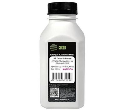 Тонер CACTUS Тонер CS-THPCHUM-100, для HP Color Universal CF540A/CF400A/CF410A/CF400A/CE310, пурпурный, 100грамм, флакон