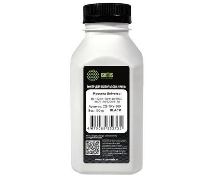 Тонер CACTUS Тонер CS-TKY-100, для Kyocera Universal TK-1170/1130/1140/1150/1160/1170/1200/1120 ; FS-720/1000/1028/1016/1030/1035/1050/1018/1118/1120/1128/1130/1135/1300/1320/1350/1370/2000/3900/4000/2020/2100/4020/3920/3040/3140/3540/