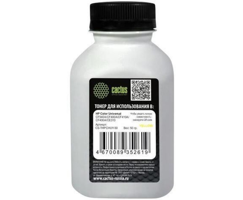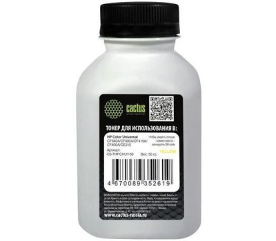 Тонер CACTUS Тонер CS-THPCHUY-50, для HP Color Universal CF540A/CF400A/CF410A/CF400A/CE310, желтый, 50грамм, флакон