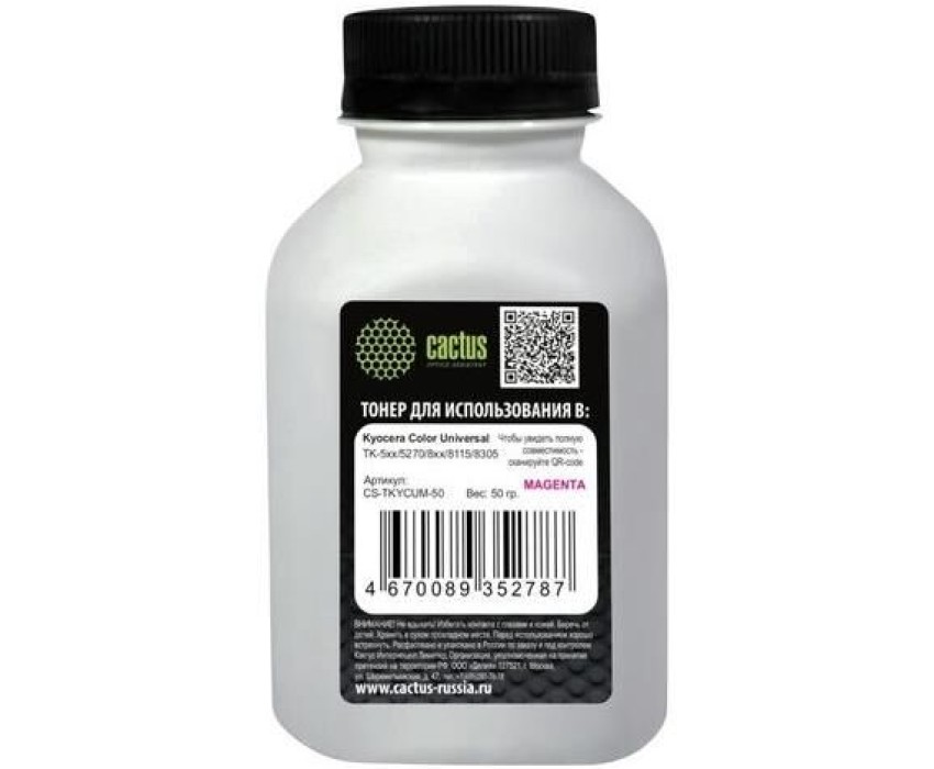 Тонер CACTUS Тонер CS-TKYCUM-50, для Kyocera Color Universal TK-5хх/5270/8xx/8115/8305, пурпурный, 50грамм, флакон